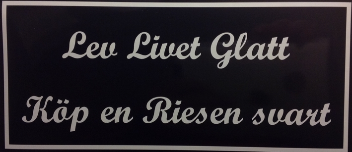 ![]() Utskuren dekal för utvändig montering Text "Lev Livet Glatt Köp en Riesen svart" Storlek 23 x 10 cm |